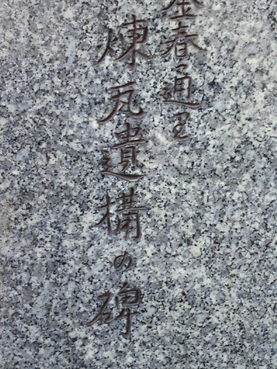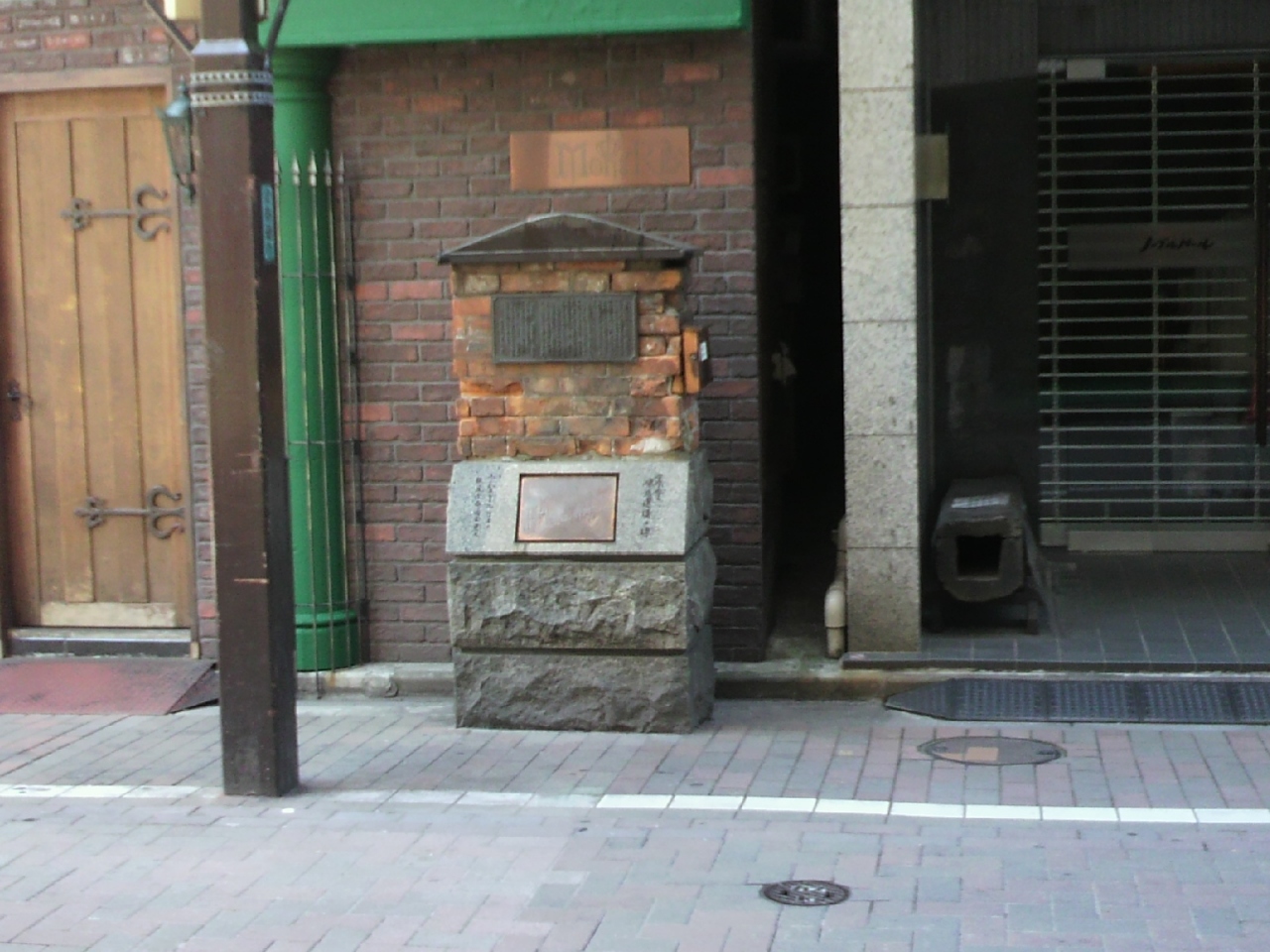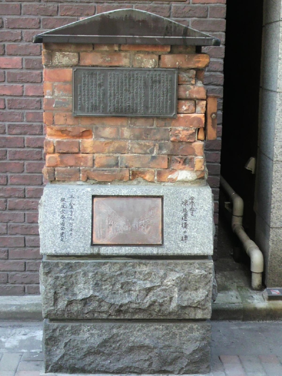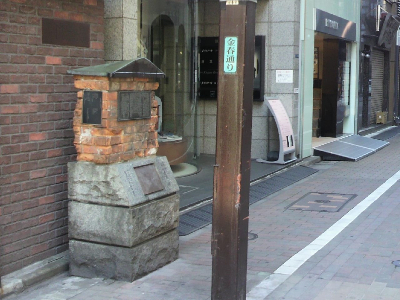 金春通りレンガ遺構の碑は、御門通りと金春通りの交差点の傍にあります。