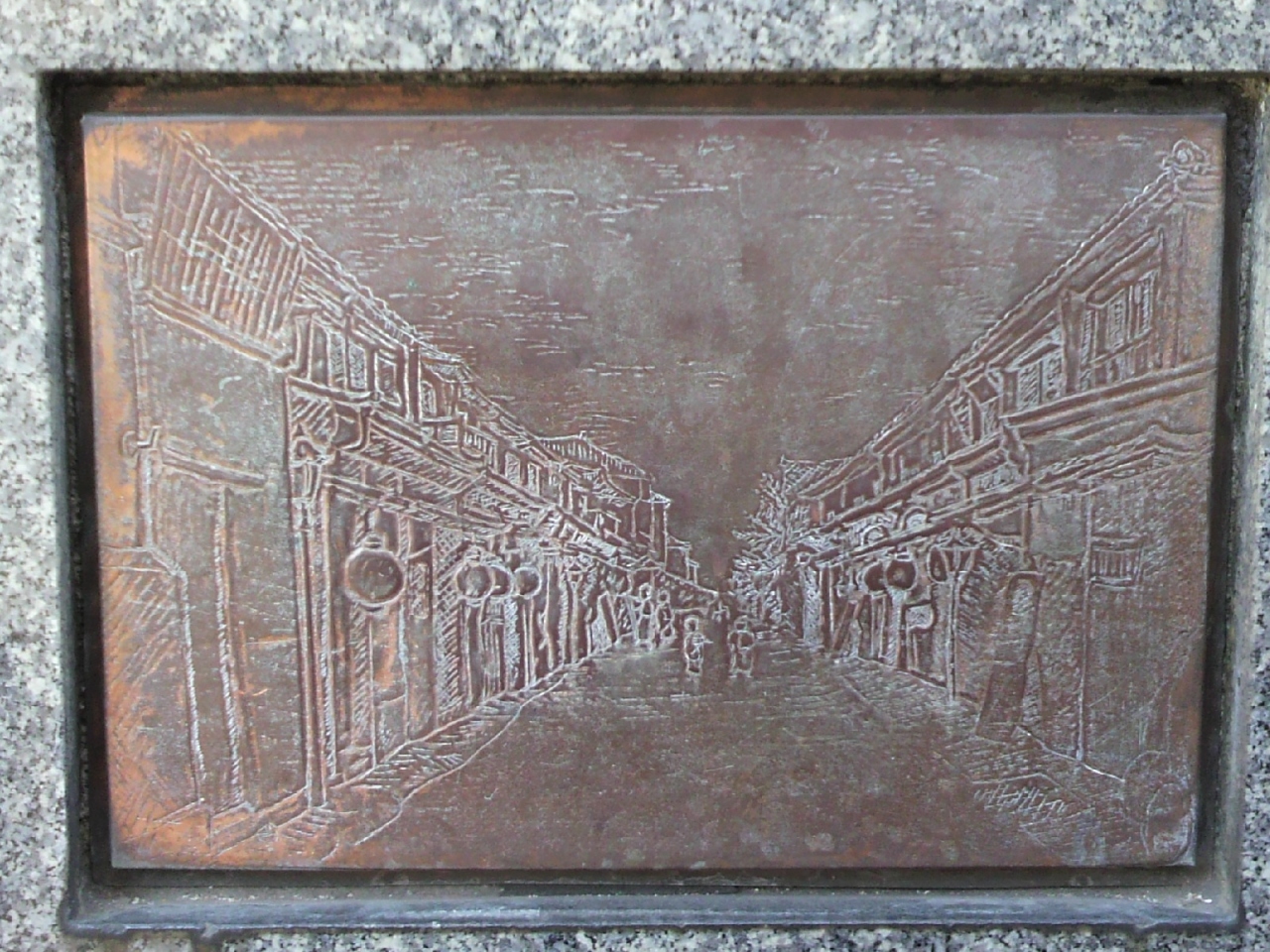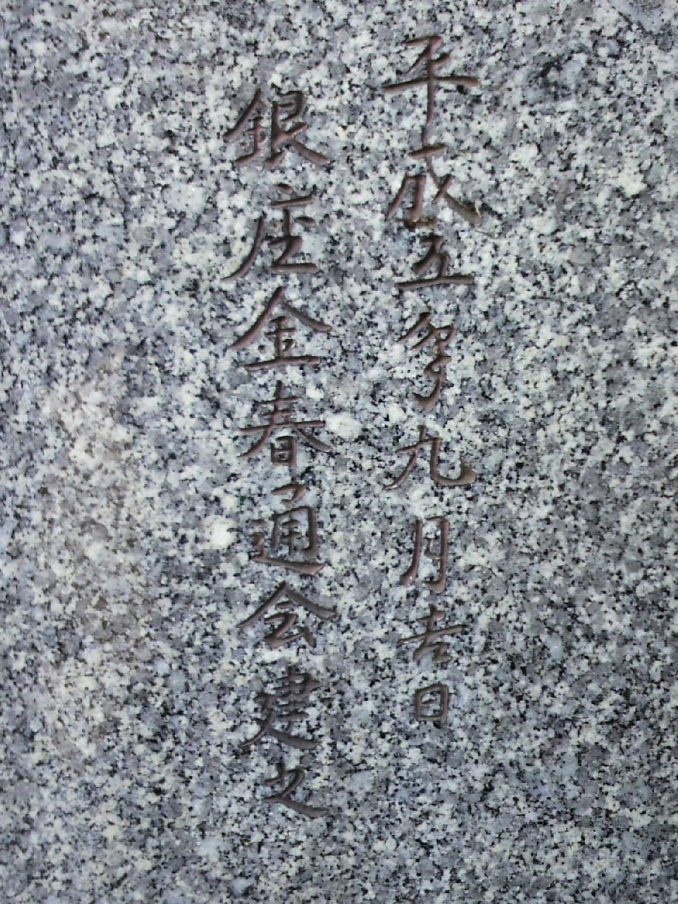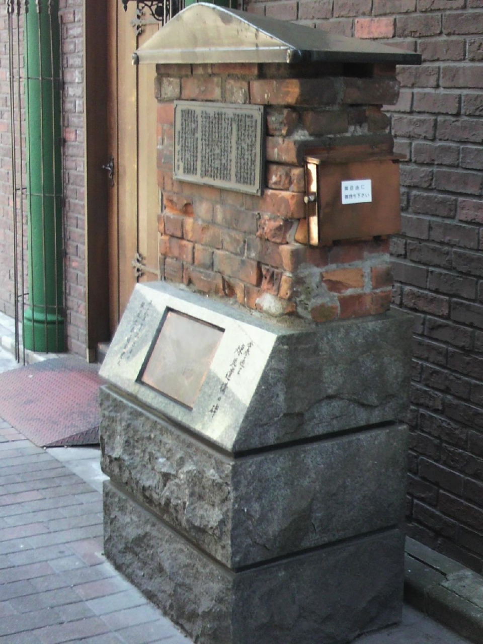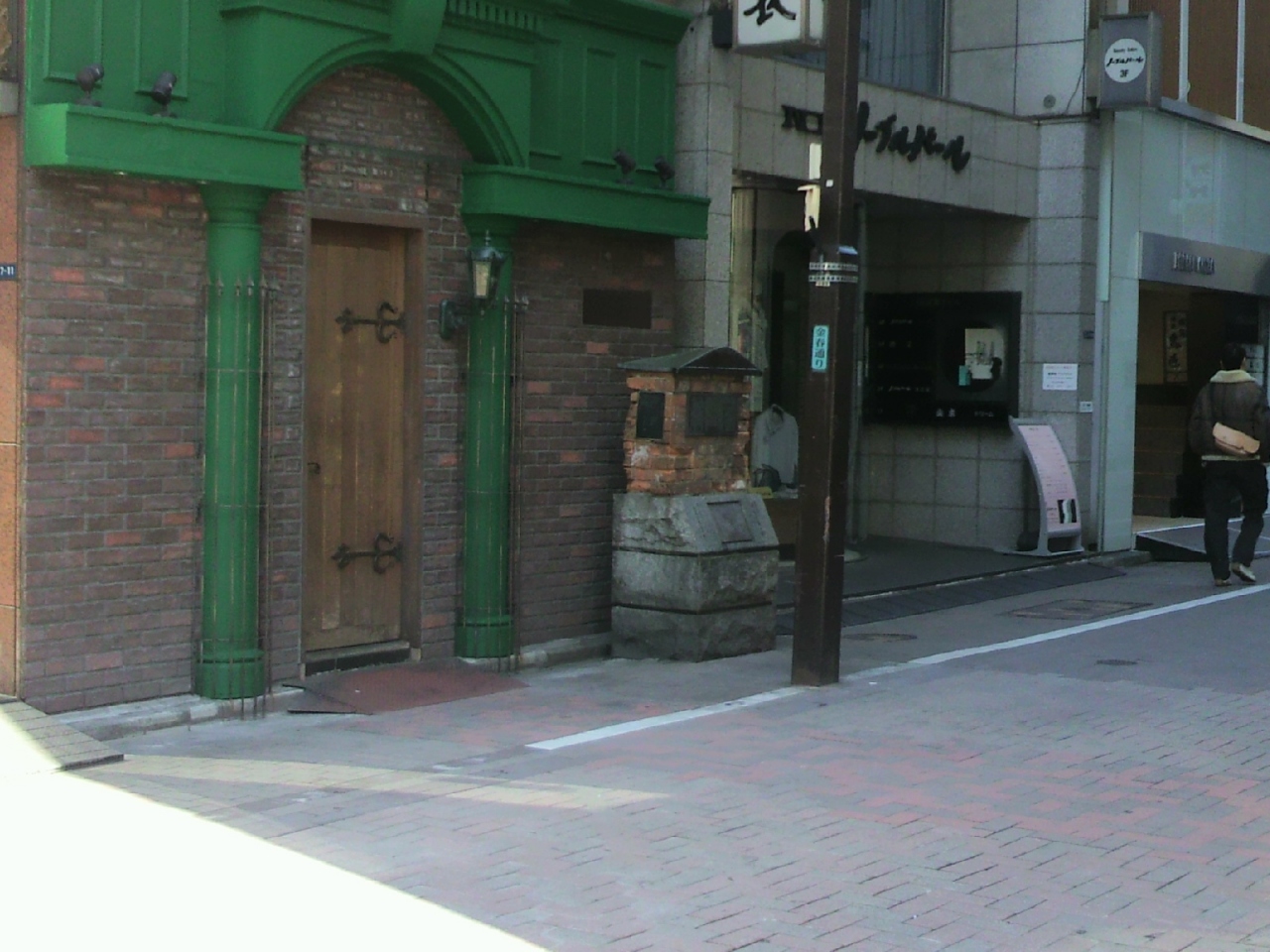 金春通りレンガ遺構の碑は、御門通りと金春通りの交差点の傍にあります。