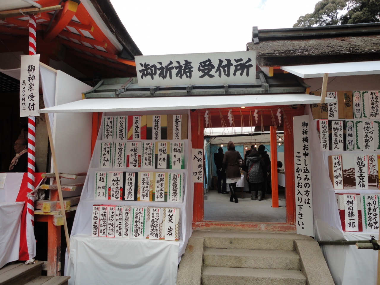 露店がいっぱい出ています。昼過ぎに行きましたがそれほど並ばずにいろんな店が楽しめます。御祈祷してもらっている人が多いです。