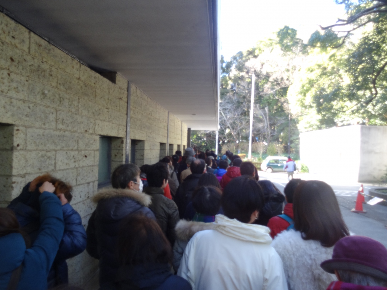 鶴岡八幡宮境側の裏口から入ると、建物を取り囲むように列が。人気ラーメン店級の大盛況に心が折れそうになったが、せっかくなので並ぶ。周りの人によれば「90分待ちらしい」とのことで覚悟したが、意外にも30分ほどで入館できた。