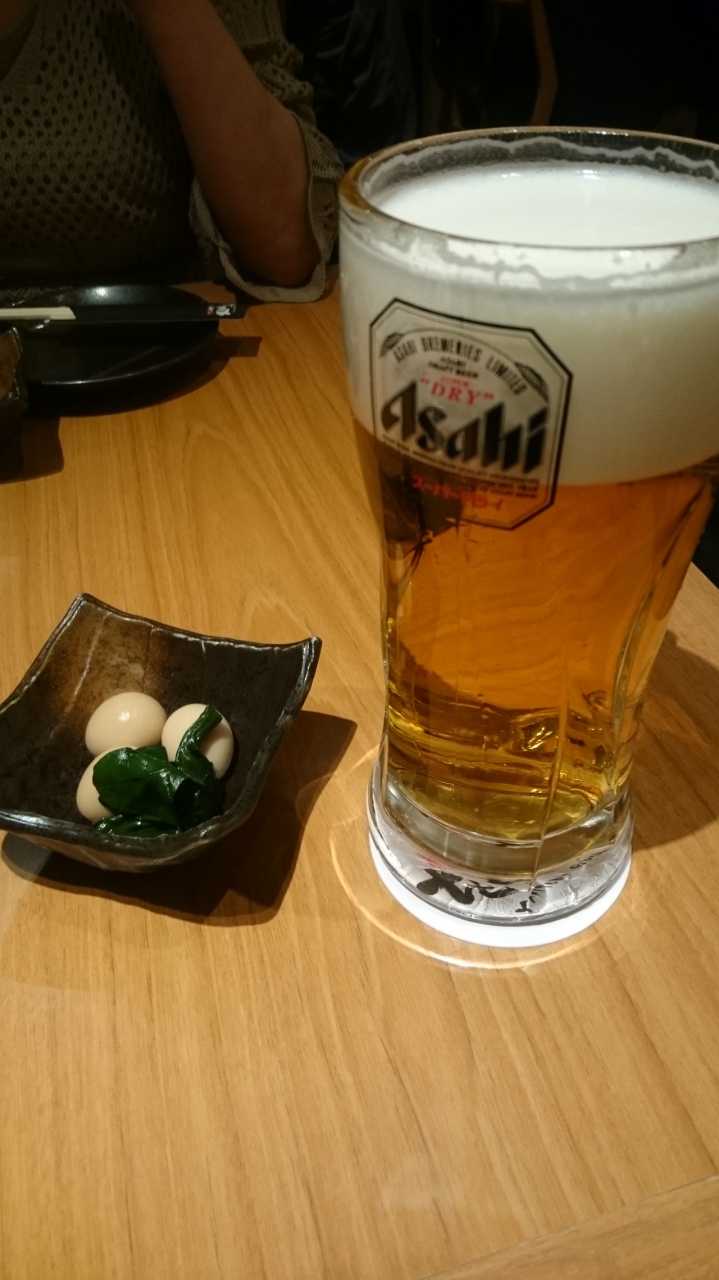 お台場アクアシティに新規オープン。テレビ局を見ながら、鶏料理を頂く。生ビール大は、特大サイズ。お通しは、うずらの卵。モモ肉の焼きものは、なかなか良い。焼き鳥、鍋、玉子掛けご飯などの鶏料理が、楽しめる、
