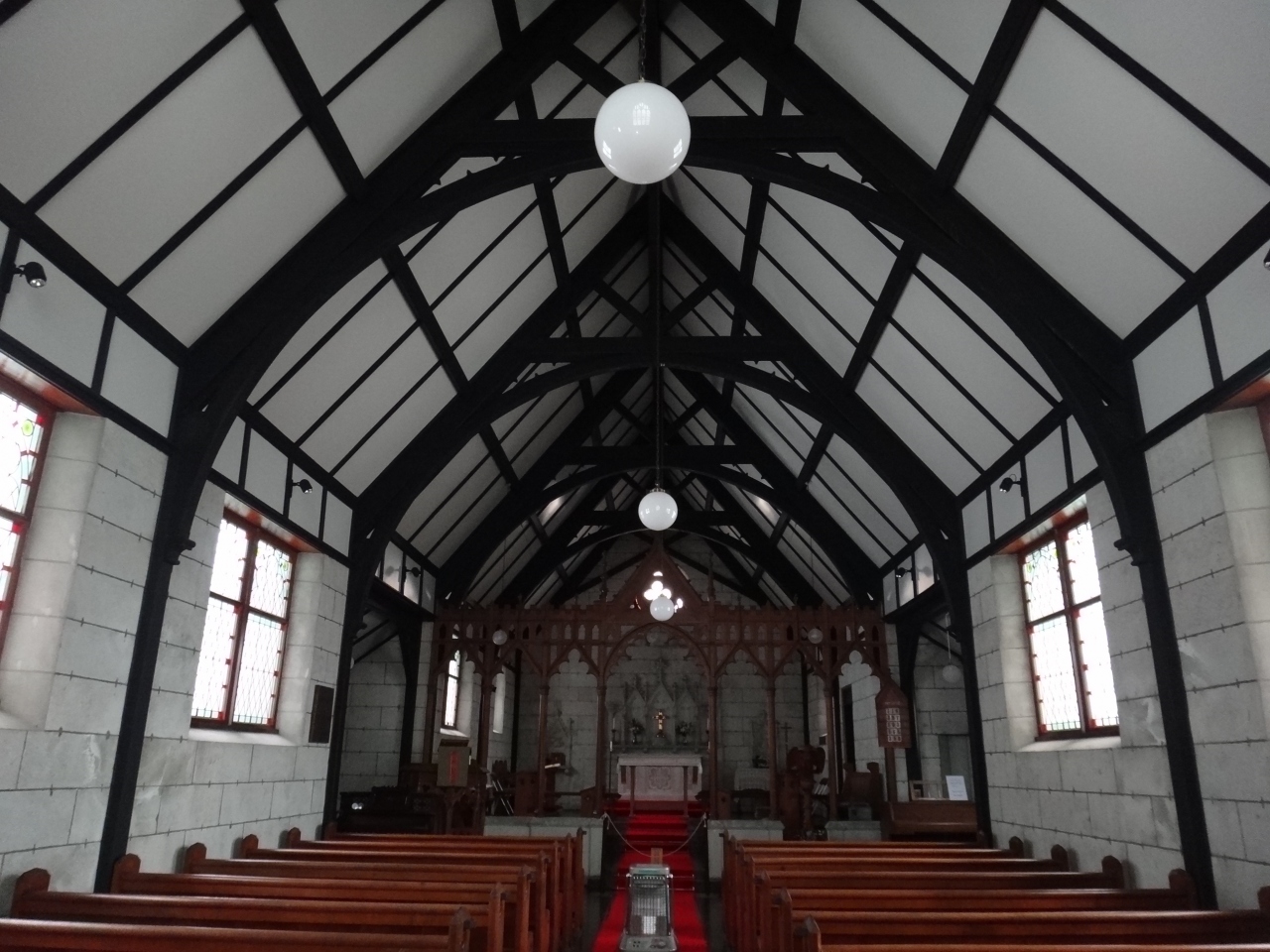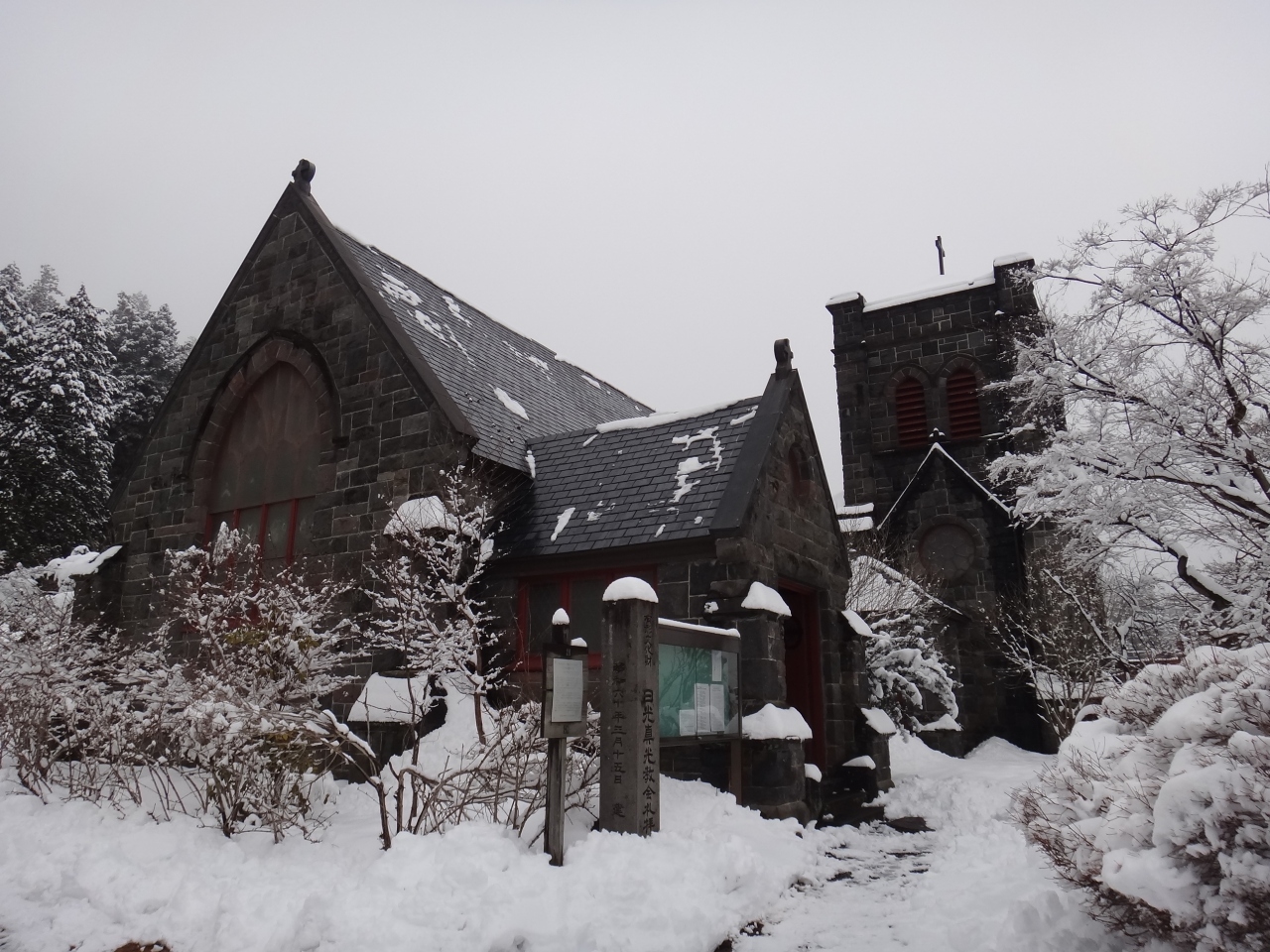 田母沢御用邸に行くために歩いていたら石造りの教会があり、珍しいなと思って覗いてみました。