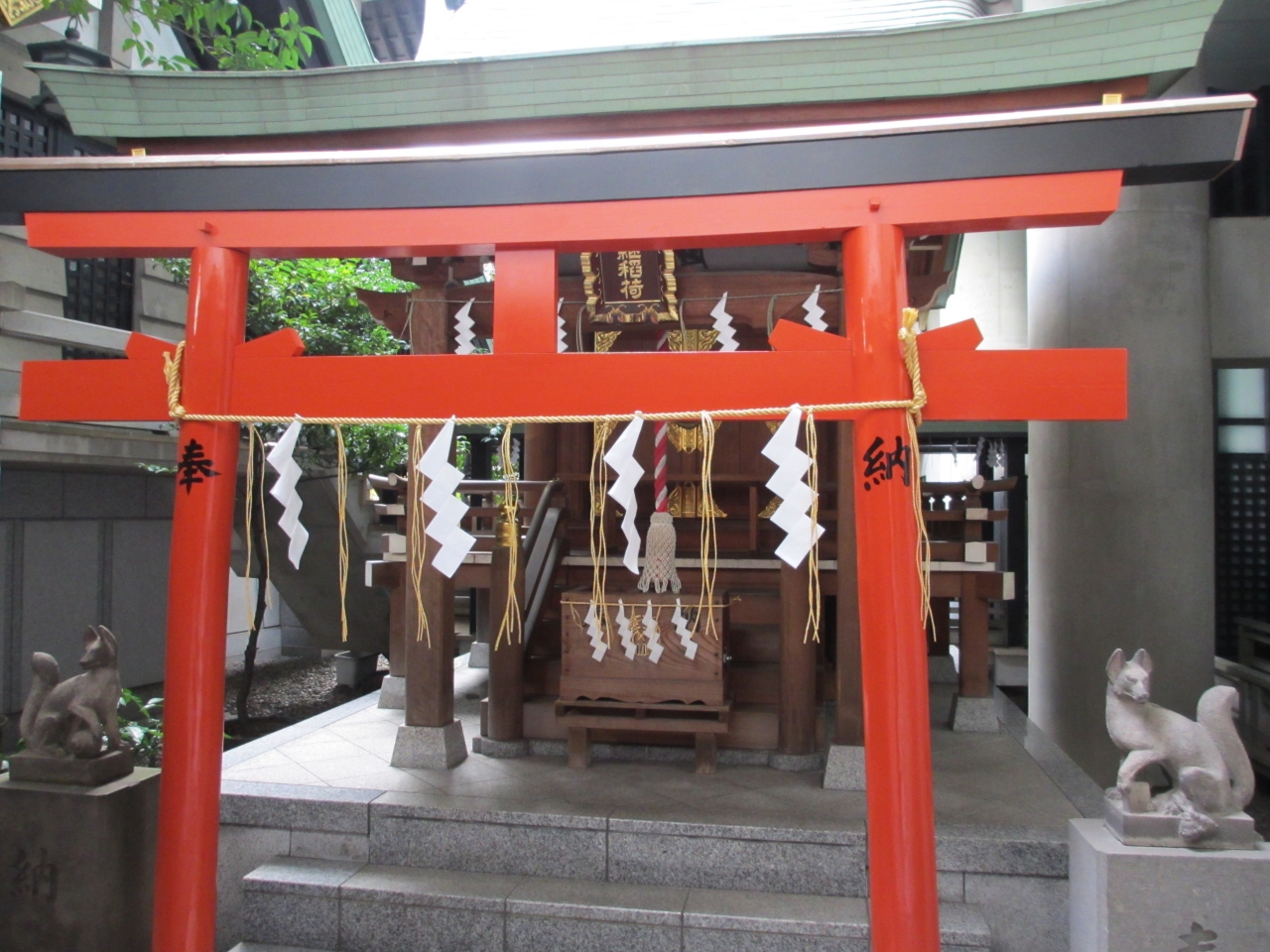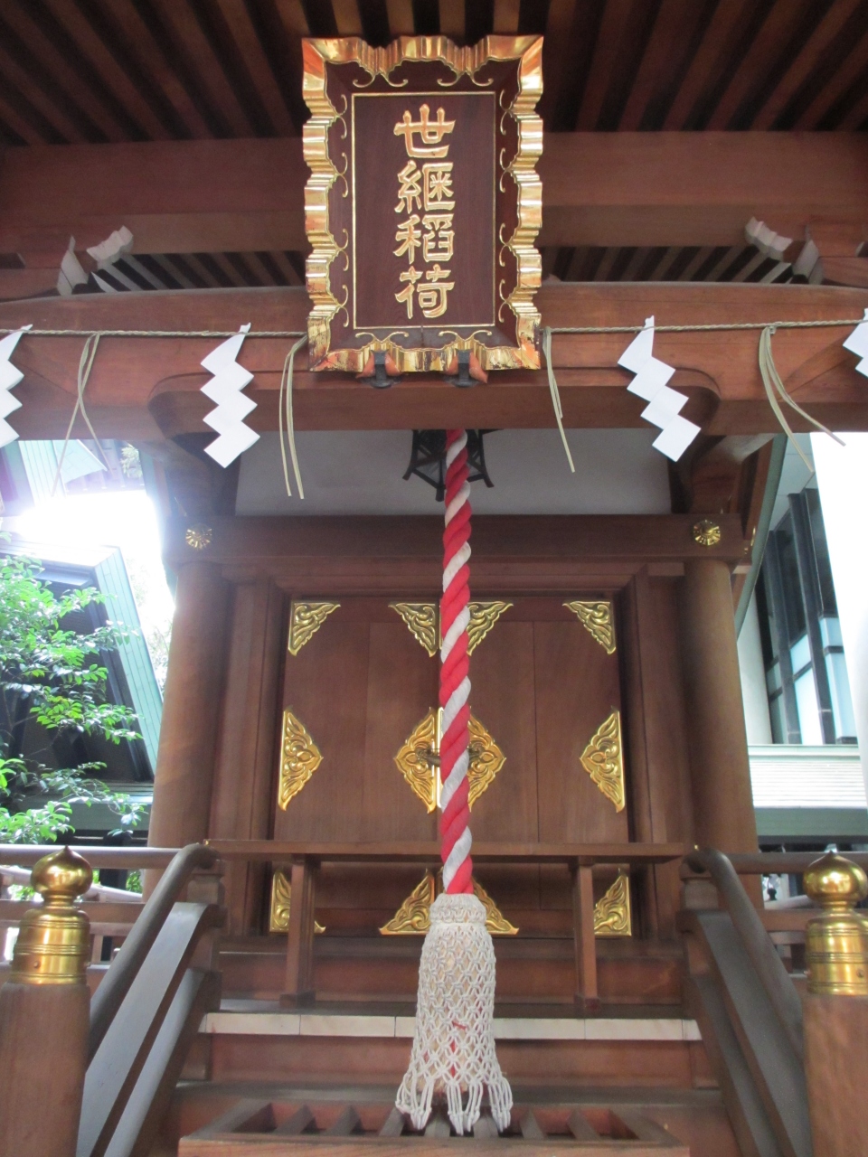 九段下駅から徒歩1分です。1441年に九段坂あたりに創建されました。当時この辺一帯を田安郷といったことから田安稲荷と称されました。1590年徳川家康が江戸入城の折、徳川秀忠がこの地を巡覧した時に田安稲荷を参詣しました。橙(だいだい)の木が境内にあるのを見て、「代々」と同音であったことから「代々世を継ぎ栄える宮」と称賛し、以来世継稲荷といわれるようになりました。その後武家屋敷に鎮座されたり、大火にあった後飯田町の鎮守として町人の信仰を集め一六稲荷と称され、子宝を願う和宮が参詣しました。1945年戦災で焼失しました。その後築土神社が当地に遷座するにともない世継稲荷社殿が再建されました。1994年に改築され神木として橙の木が植えられ、子宝や後継者を願う人々に親しまれてます。