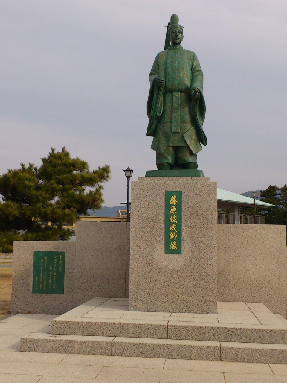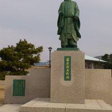 藤原俊成は三河国司だった時に、蒲郡の開発を行ったそうです。藤原定家の父でもあり、千載和歌集を編んだ歌人としての方が有名なのかもしれません。竹島水族館と竹島へ渡るための竹島橋の間に広がる竹島園地の中に、この銅像があります。海の方を向いています。