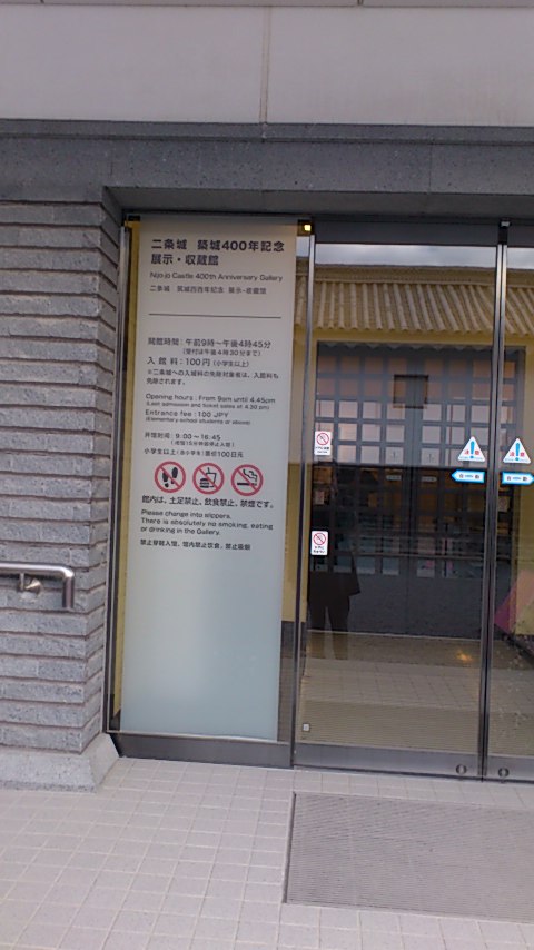 二条城の東大手門から入場し、二の丸御殿、二の丸庭園と廻って、二条城を一巡りした後、東大手門に戻りましたが、そこを通り過ぎて門の右側へ行くとこの展示・収蔵館があります。入館には別途100円が必要です。小さな展示室ですが、二ノ丸御殿障壁画を展示しています。