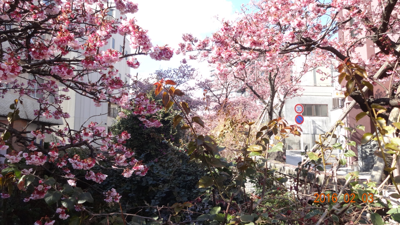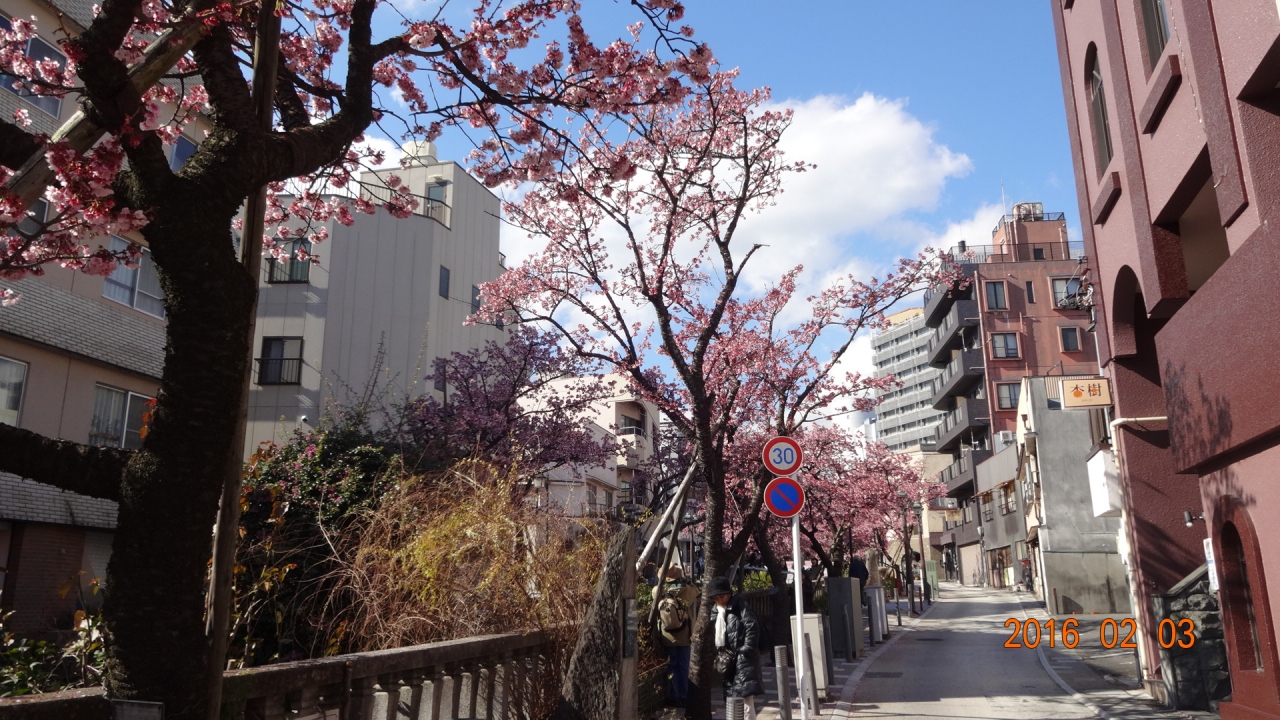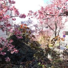 前回、12月に訪問した時は「よく整備された綺麗な遊歩道」という印象を受けたのですが、今回、2月に訪問したら、熱海桜が開花して、華やかな雰囲気でした。