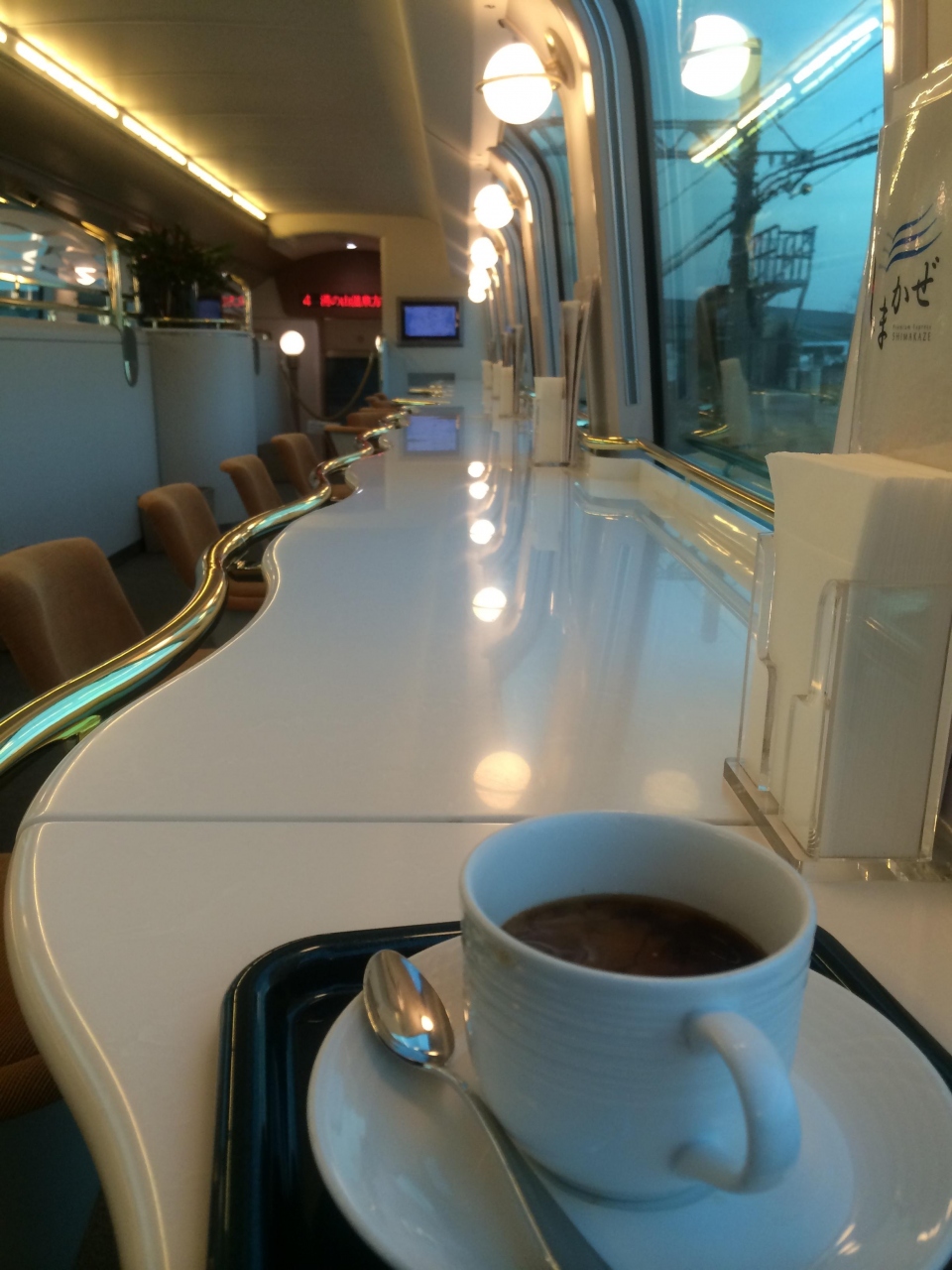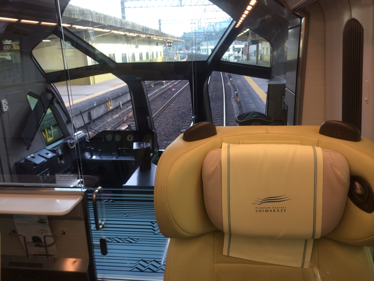突然思いついたお伊勢参り。前日の昼間にしまかぜの空席を調べたら行きは×、帰りは空席があり、早速予約してみると、最後尾の独り席が空いていました。展望車両で革張りの役員の椅子の様なシート、席を後ろ向きにするのにボタン一つで回転するのに驚きました。シートは快適でしたが、時々来る見物人と車掌さんと目線が会うのが難点でした。カフェ車両は貸切でした。この値段で高級感を味わえ大満足。