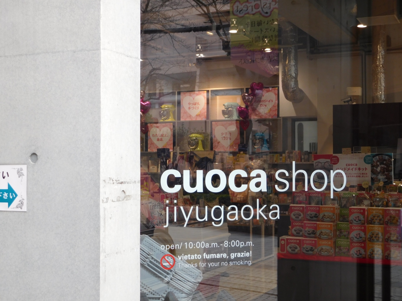 自由が丘スイーツフォレストのすぐ近くにある、製菓材料の専門店です。時期的にバレンタインが近いので、バレンタイン用の手作りキットなどが店頭に並んでいて、ティスティングも行っていました。製菓材料の他にも、器具やラッピング用品も色々揃っていました。