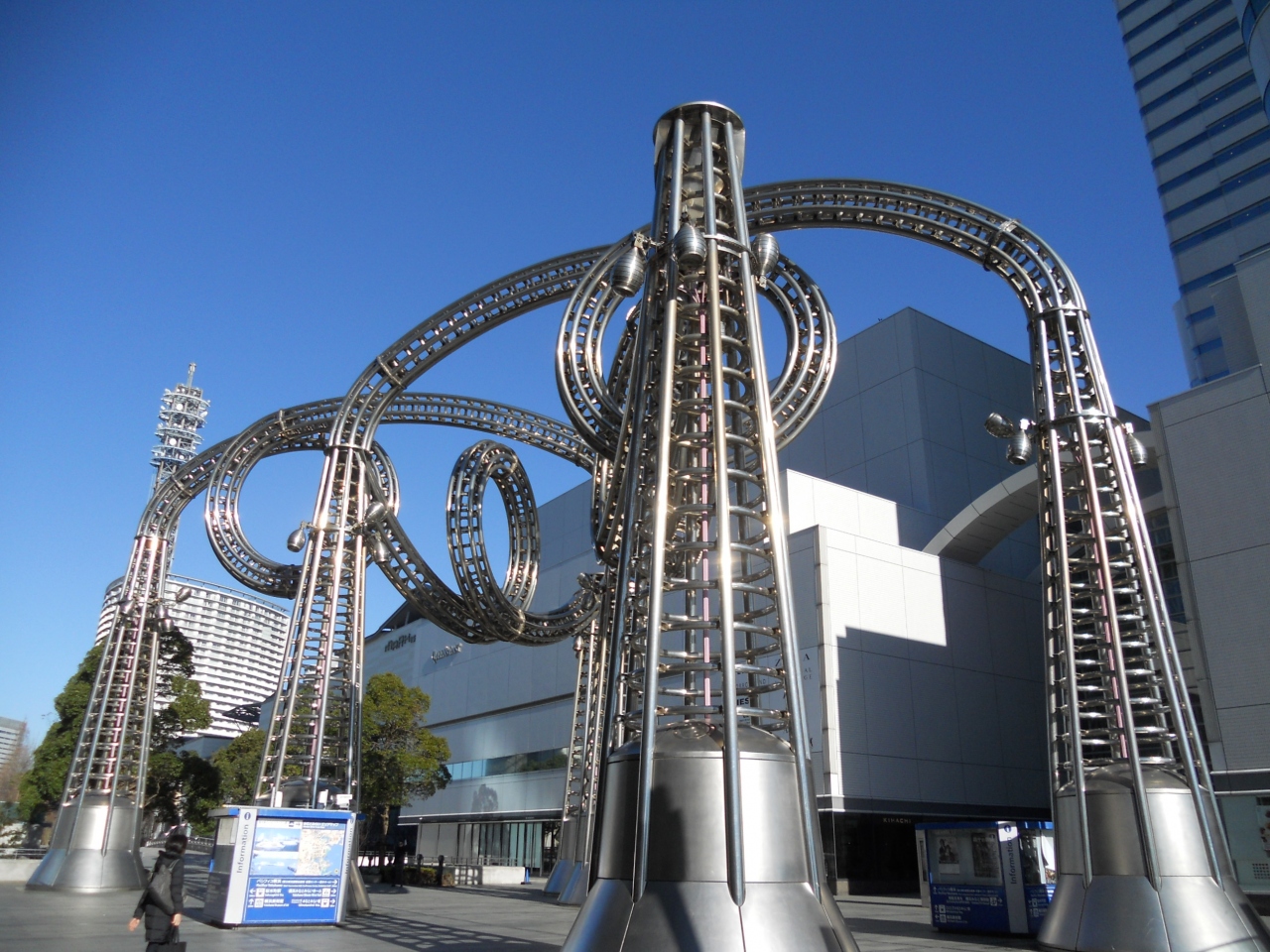 横浜みなとみらいの「ランドマークタワー」と「クィーンズ・タワー」の間の広場にある、巨大なステンレス製のオブジェです。