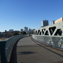 横浜みなとみらいの「横浜江ワールドポーターズ」の東側にある、楕円形の歩道橋です。
