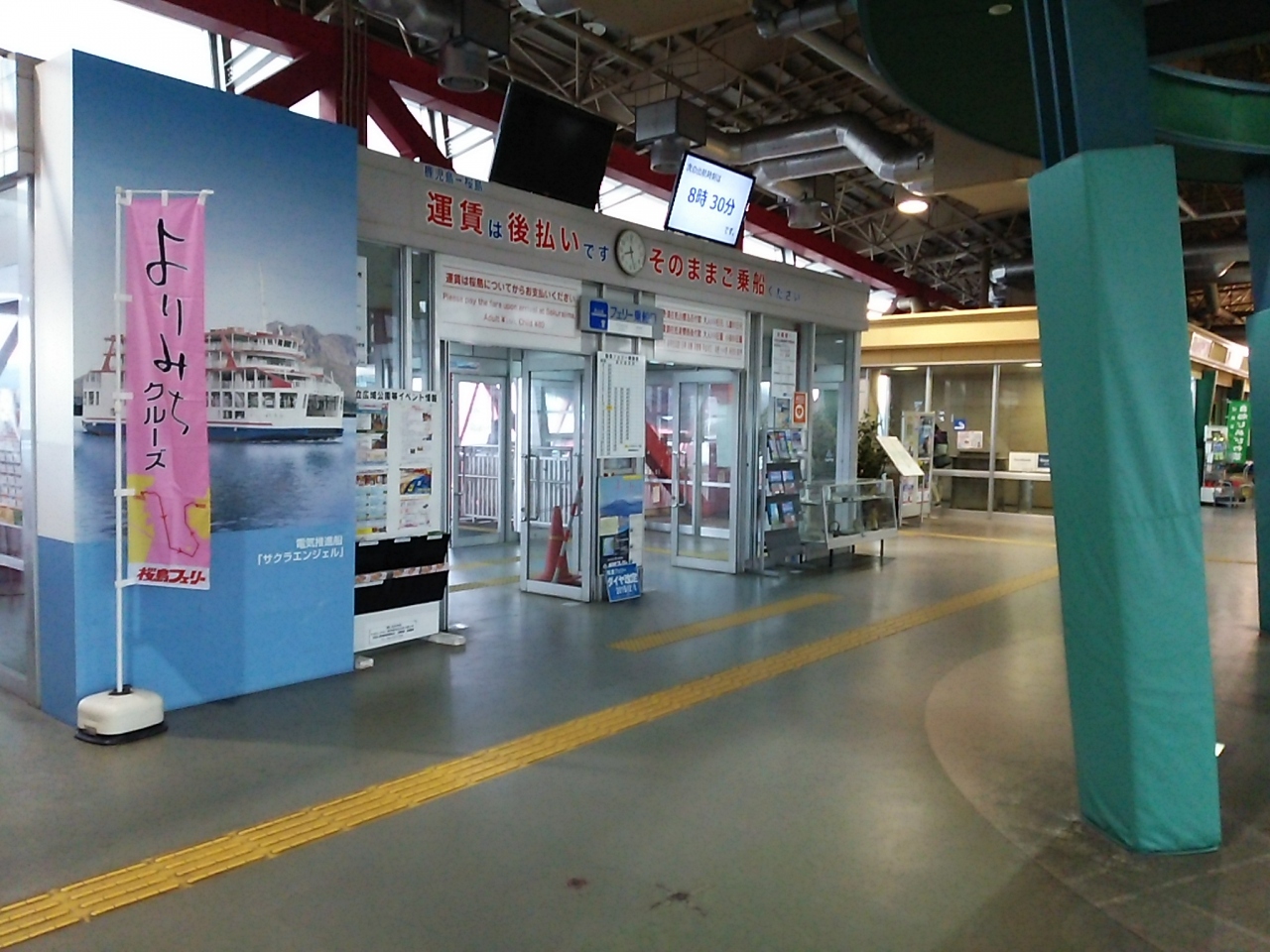 船が24時間運航かつすぐに発着するからターミナル内はがらがら。朝は開いているお店もないからさみしい感じです。
