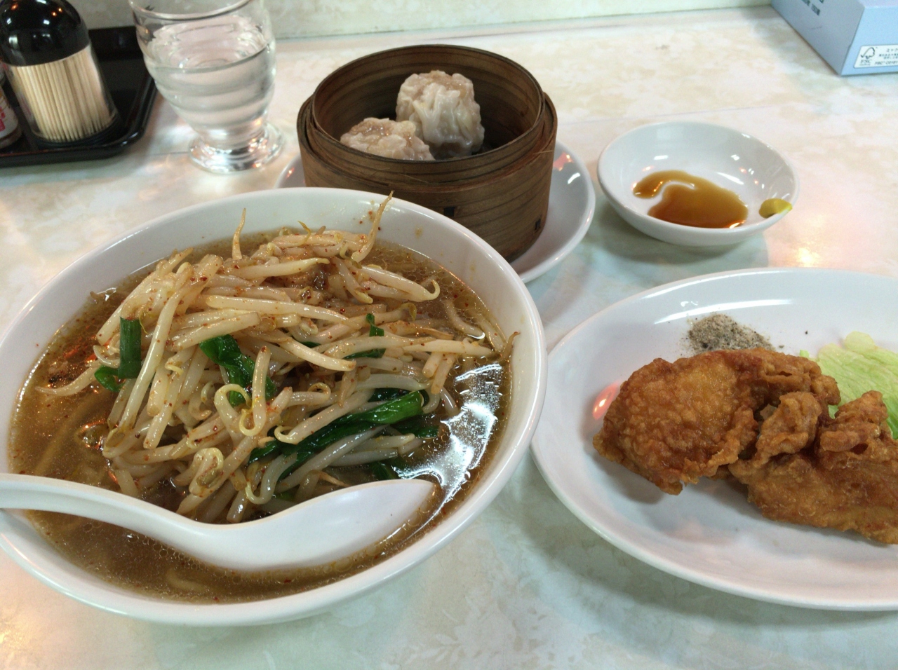 お昼はお得なランチセットがあって、2/3ベトコンラーメンと鶏のから揚げorゲソのから揚げ、シューマイor杏仁豆腐がチョイスできます。