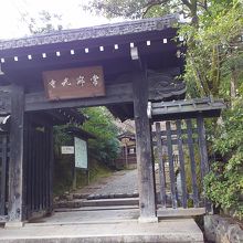 京都嵯峨野の小倉山にある紅葉で有名なお寺の山門です。二尊院の方から坂を下って来ました。その道を右に折れると参道です。石段を登って行くと、まずこの山門が現れます。角材を組んで作られたシンプルですが、力強い門です。