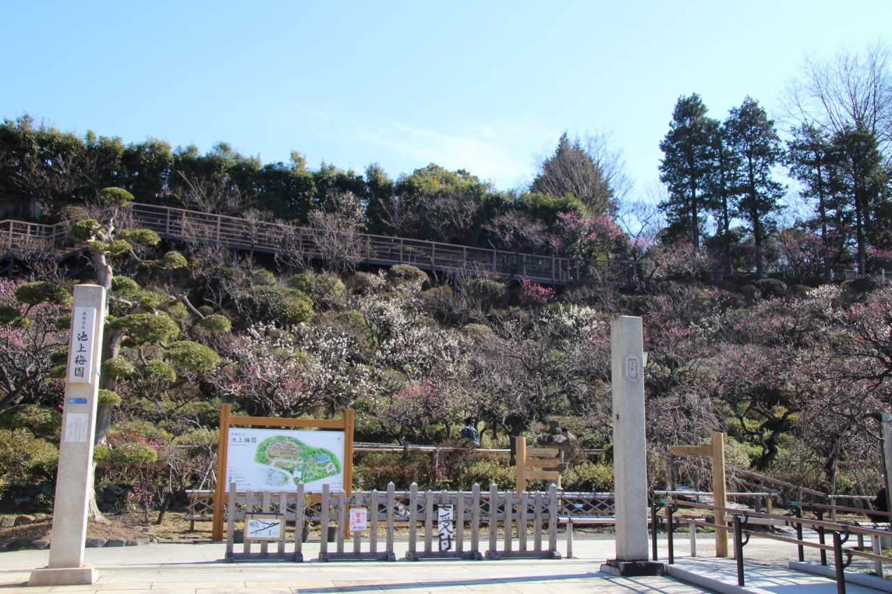 池上本門寺の節分追儺式の豆まき見学のついでに立ち寄りました。正月頃暖かい日が続いたからか例年より梅の開花が早いようです。節分の日に3分咲きぐらいでした。