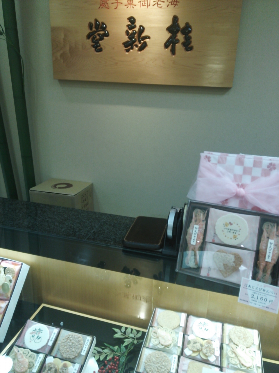 松屋銀座の地下1Fにあります。海老の煎餅がとても有名な煎餅店です。国産のエビの車えび、甘えび、たんえび、芝えび、赤えびの煎餅があります。エビの煎餅が好きな知人にはここで購入します。エビの形の残った煎餅もあります