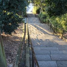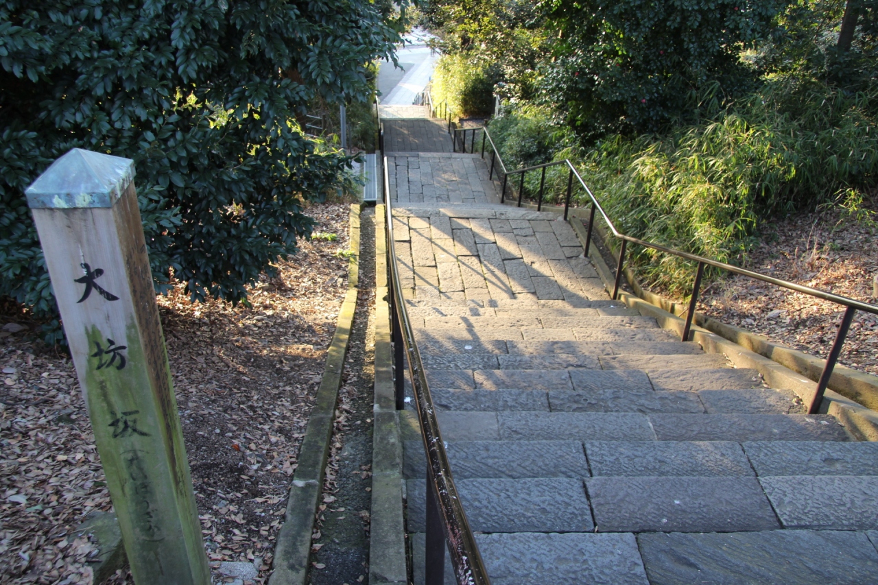 大坊坂は本門寺西側にある幅が狭く急な階段状の坂です。階段の途中の脇に日蓮聖人御荼毘所跡に建立された多宝塔があります。