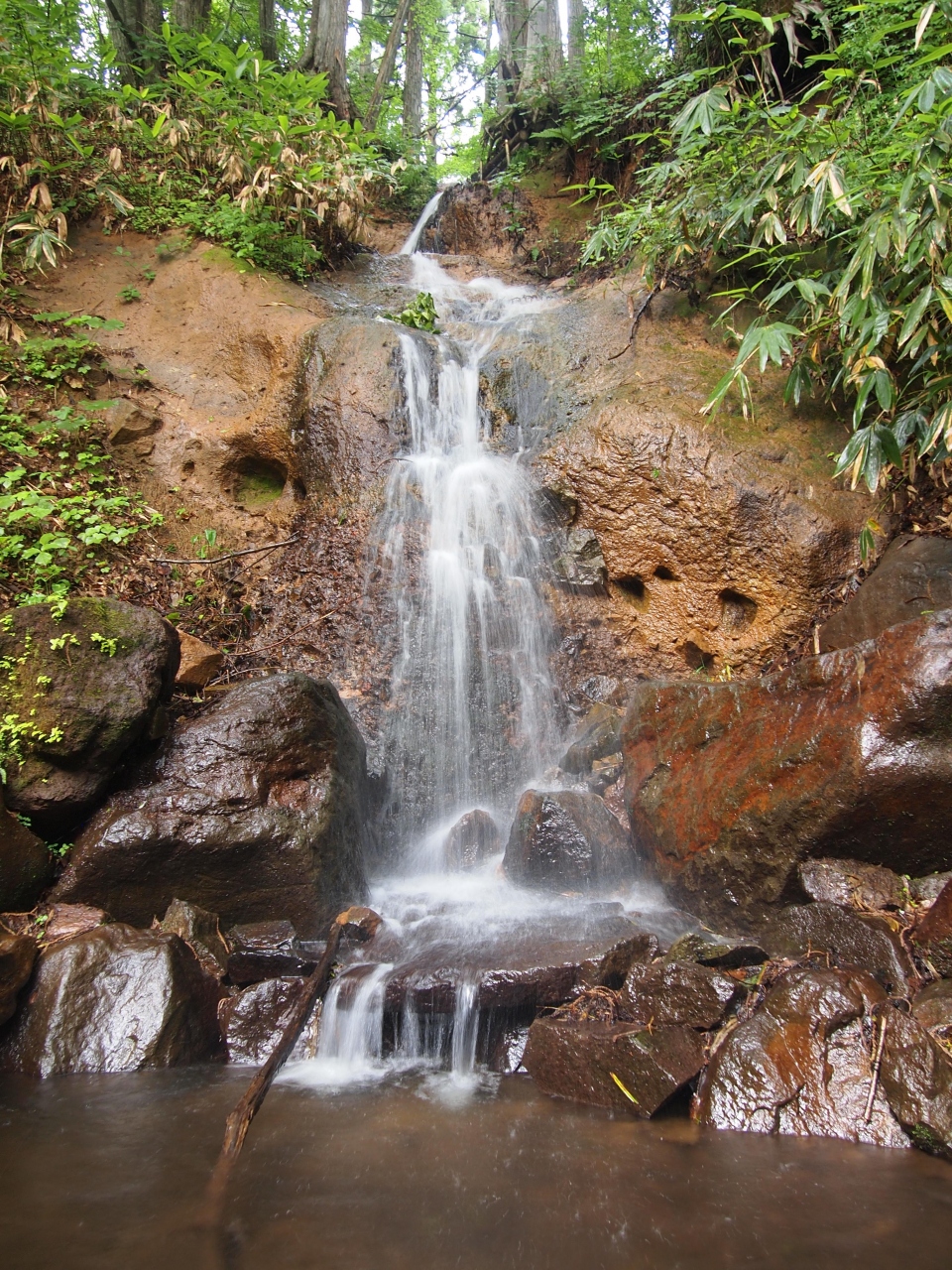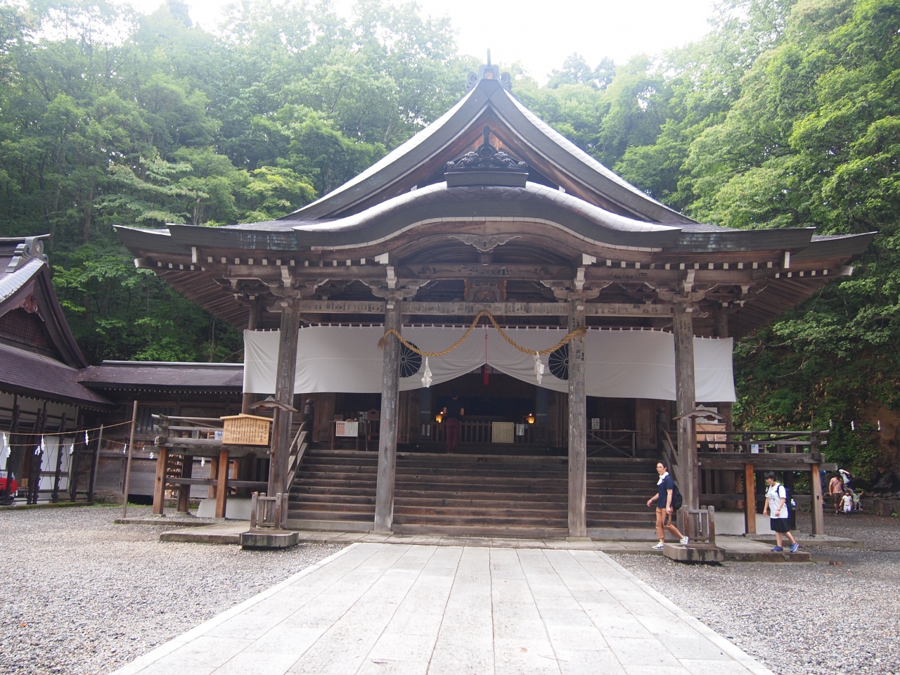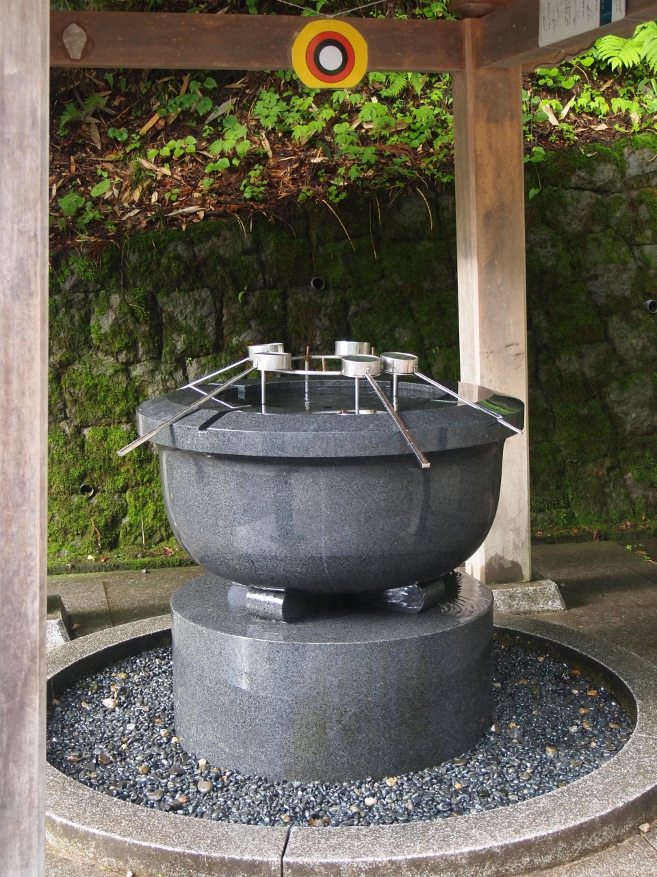社の近くには、ご神木の杉の木があったり、小さな滝があり、多くの人が参拝しています。