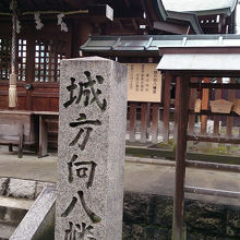 大阪城の守護神として城の方向に見ていたことから、そのまんまの名前が付いた分かり易い名前の神社です。生國魂神社の末社の一社で境内の北側の一画に他の末社と並んで建っており、木造の塀に囲まれており、社殿も木造の木の素材感を強く感じさせる建物になっています。ご利益は勝運、武運長久、で必勝祈願など勝負の神様として信仰されています。生國魂神社を訪問した際に境内の他の末社や石碑などと合わせて訪問する感じの神社です。