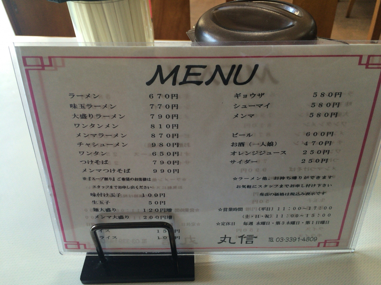 丸信は荻窪駅北口から青梅街道を環七方面に、五分ぐらい歩いた所にある店