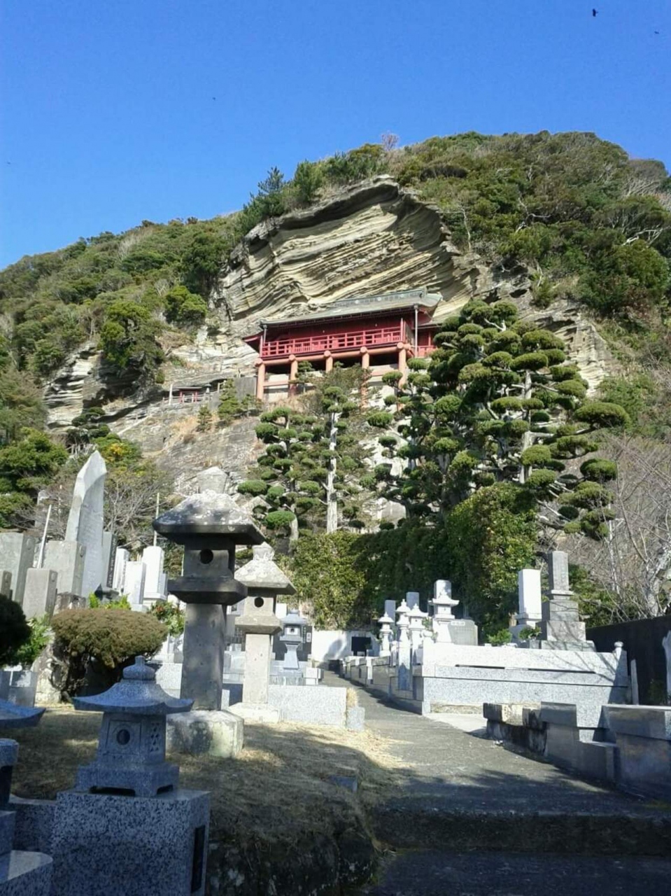 名前の通り崖にお寺があります。
