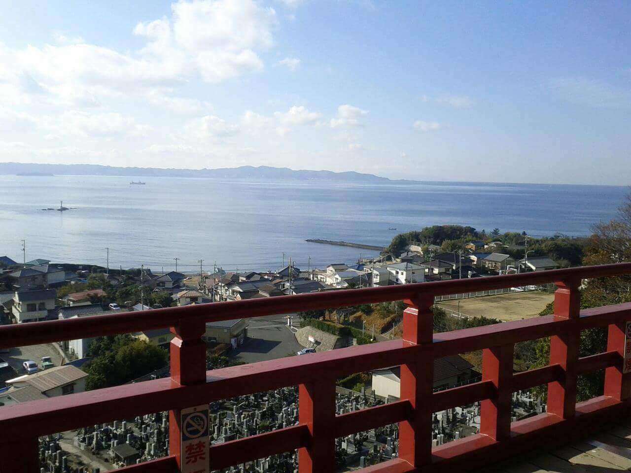 5分強?少し息をきらしながら登りきると海と民家の絶景。