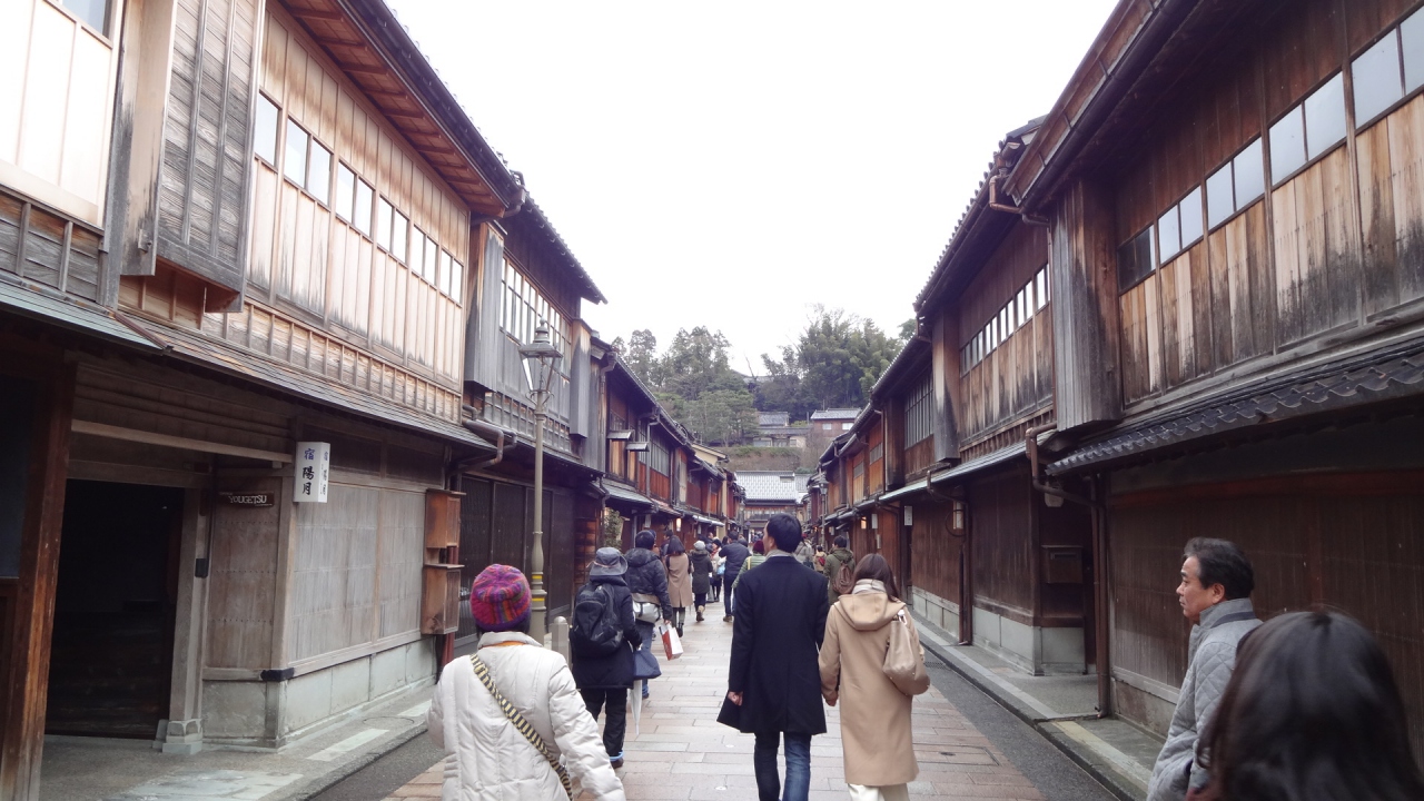 江戸時代、加賀藩が城下のお茶屋を集めて誕生した藩公認の茶屋街です。にし茶屋街と主計町茶屋街と並ぶ金沢三代茶屋街のひとつとなっています。ひがし茶屋街は中でも最も規模が大きな茶屋街。重要伝統的建造物群保存地区にも指定され、石畳の道は風情があり、紅殻格子のお茶屋さんが並んでいて、江戸時代の雰囲気を今に残しています。金沢を代表する金箔のお店や、和菓子屋さんもあります。