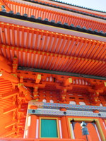 清水寺の敷地内に入ると、その鮮やかさですぐ目に入ります。正直、ここまで鮮やかで美しいとは思いませんでした。近くの五重の塔も落ち着いた美しさですが、こちらの三重の塔はその鮮やかさで負けてないですね。とにかく外国人が多いので平日早く行くことをおすすめします。