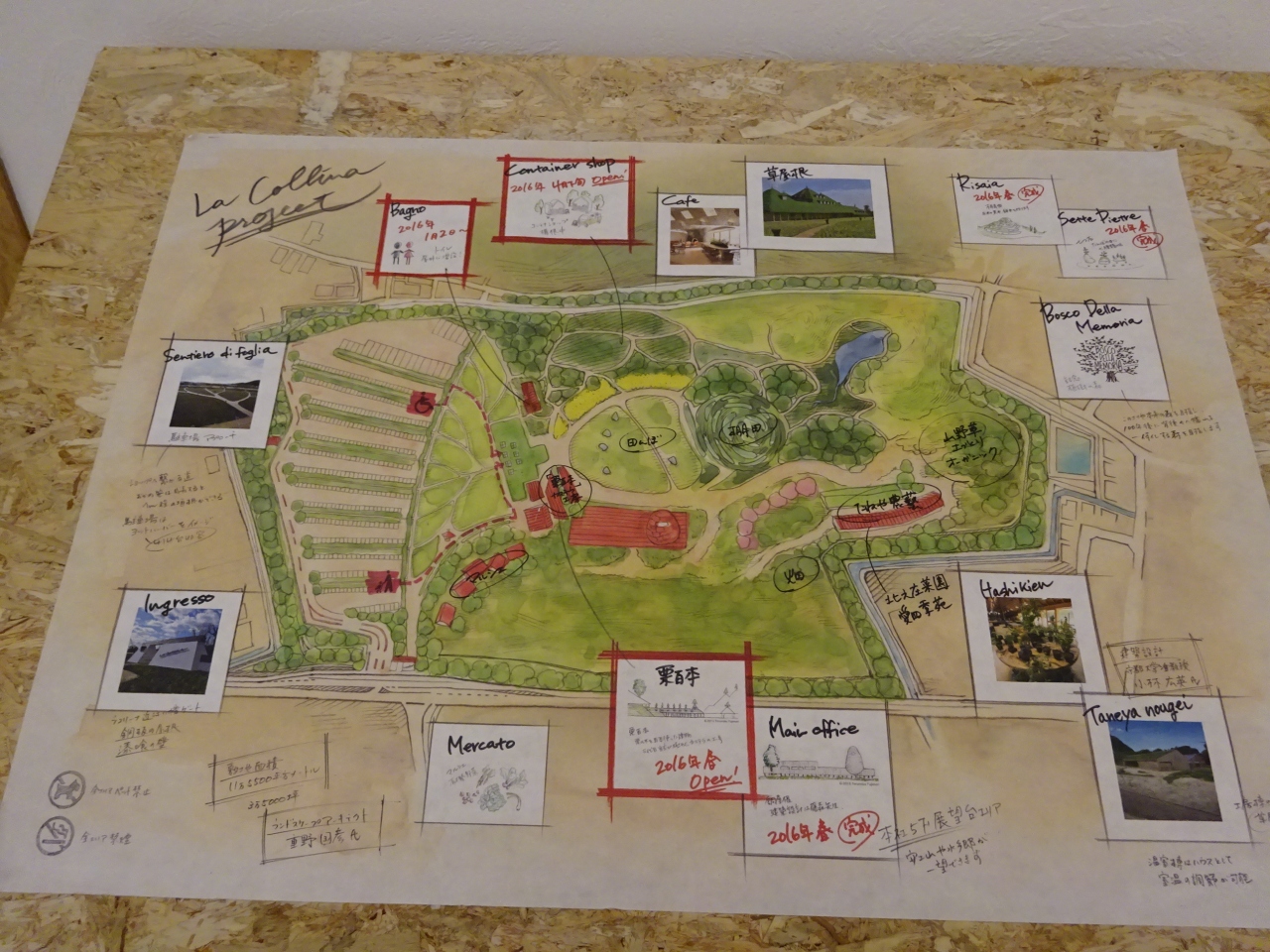 今年の春には現在の建物の奥に、田んぼや畑、棚田や栗百本、マルシェなど、まるでテーマパークのような姿がお目見えするそうです。