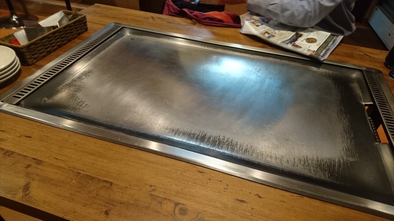 カウンターの大きな鉄板で作ってもらい、テーブルの鉄板で食べる方法と、お皿に盛ってもらう方法が選べます。