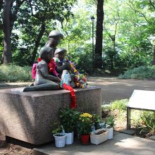 1977年に横浜のとある住宅地に米軍機が墜落。そこで巻き込まれてしまい亡くなった母親と幼い子ども2人をモデルにした銅像です。この周りは日陰のせいか、少しどんよりした雰囲気がするのは私だけでしょうか・・・この悲惨な出来事は風化させてはいけません。