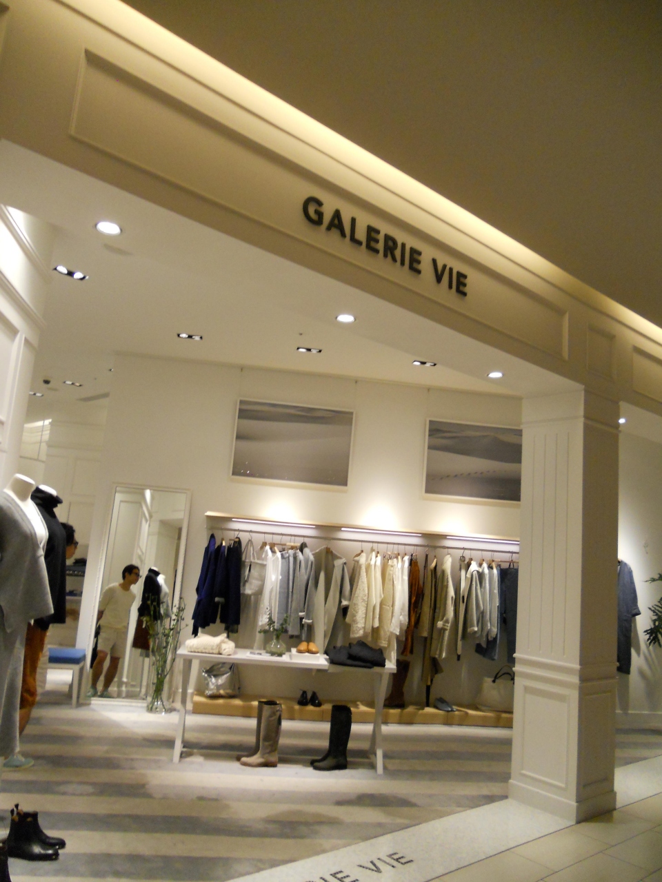 「ギャルリーヴィー」は南館2階の「ビームスEX」の北隣にあるレディースのセレクトショップです。トゥモローランドの系列で、シンプル&モダンでナチュラルなアイテムがたくさん揃っていました。