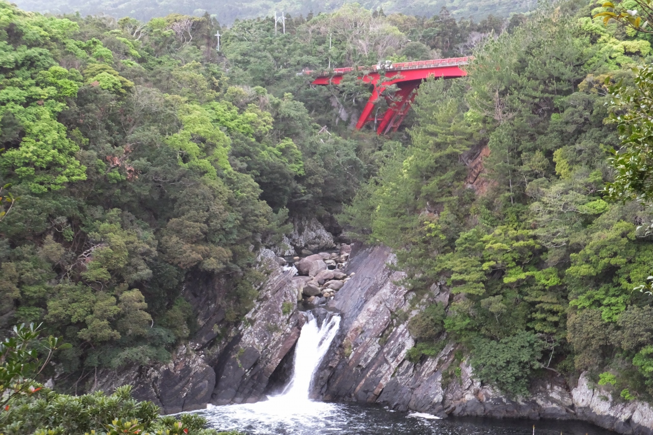 トローキの滝は、海へ直接落ちる落差6メートルほどの滝です。海へ直接流れ落ちる滝というのは、日本全国を探してもとても珍しいそうです。小さな可愛い滝で、赤い鉄橋と木々の緑のコントラストがとても美しい景観です。