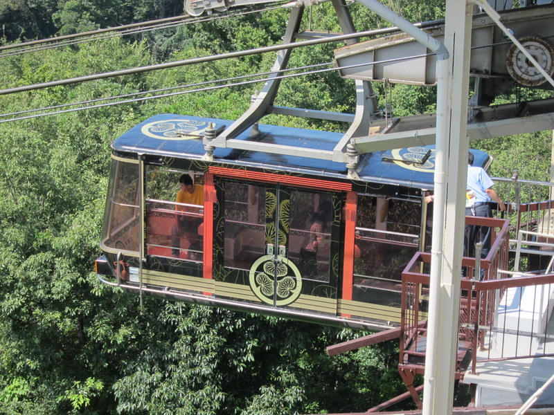 日本平の山頂と久能山東照宮を結ぶロープウエイです。ロープウエイは乗ったら高い方向へ進むものと思いがちですが、こちらは久能山へ向けて高度を下げます。日本平と久能山の谷間を進むわけですが、車窓には駿河湾を望め、天気が良ければ富士山も望めるそうです。