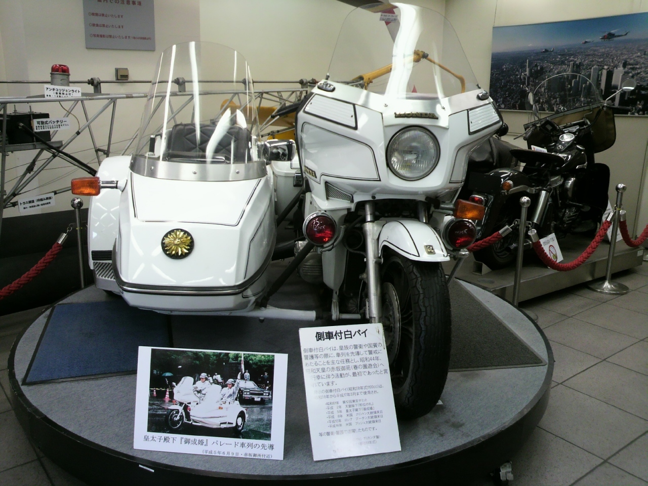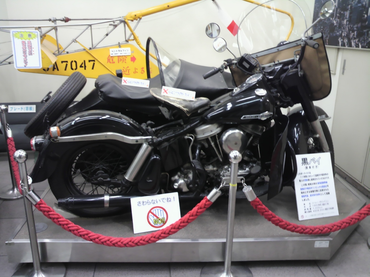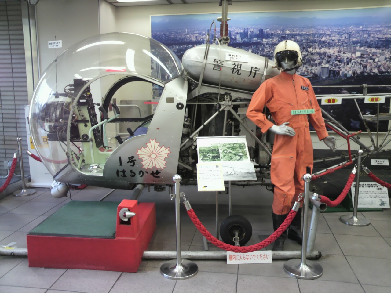 博物館の1階には、白バイやヘリコプターの実物が展示されています。