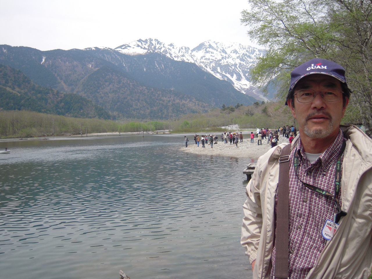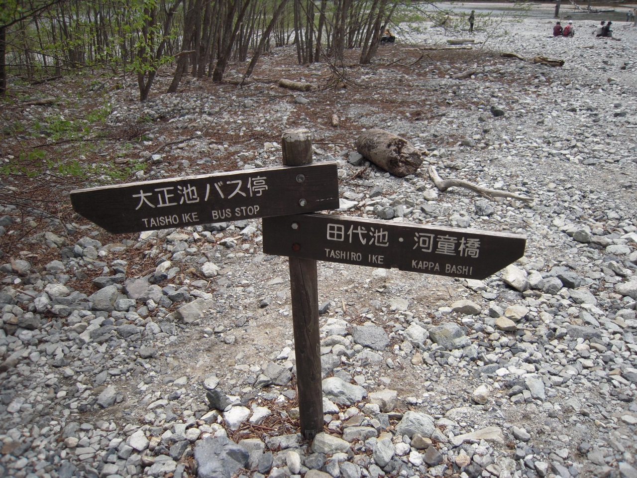 大正池でバスを降り、ホテル横の散歩道を1時前に出発し、河童橋に向かう。
