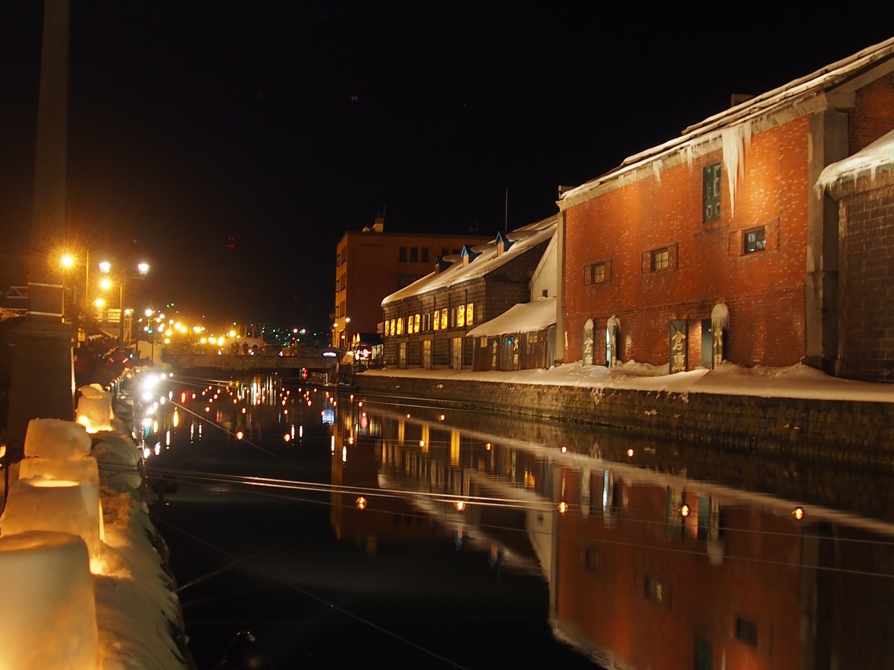 小樽運河は、四季を通して楽しめます。冬のイベントは雪あかりの道です。派手ではないですけど、手作り感と素朴なロウソクの灯りが雪に映えてキレイです。