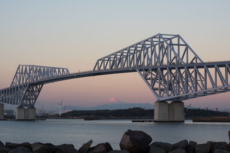 船を橋の下が通るために独特の形をしている橋で、2012年に開通しました。橋桁は日立造船が制作したそうです。夜間のほうがライトアップされており、より雰囲気はあります。若洲公園からでしたら歩いて渡ることも可能となっています。
