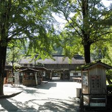 もみじまつりのときは、猿回しや和太鼓、お茶会、陶器展などのイベントが行われる広場です。夏の朝だったので、ほとんど観光客もいなくて閑散としていました。広場はきれいに掃除されていて、木々の緑を楽しむことが出来ました。