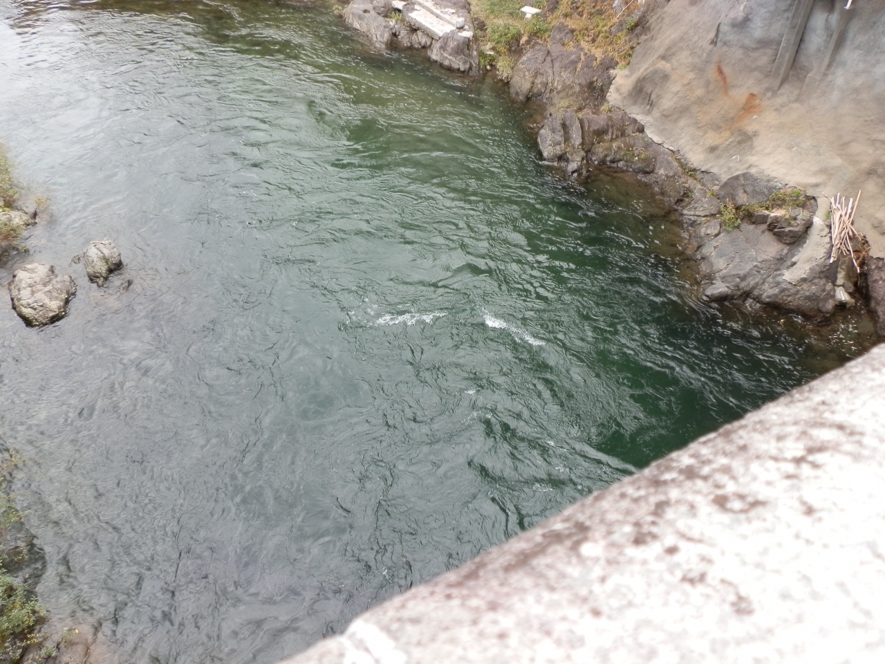 「新橋」から水面までの高さは12m。川幅が狭く、水深もそんなに深くないように見える。飛び込んでも本当に大丈夫か、疑問に思えました。夏はきっと水量が多いのでしょう。