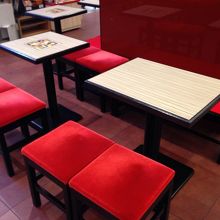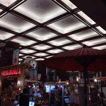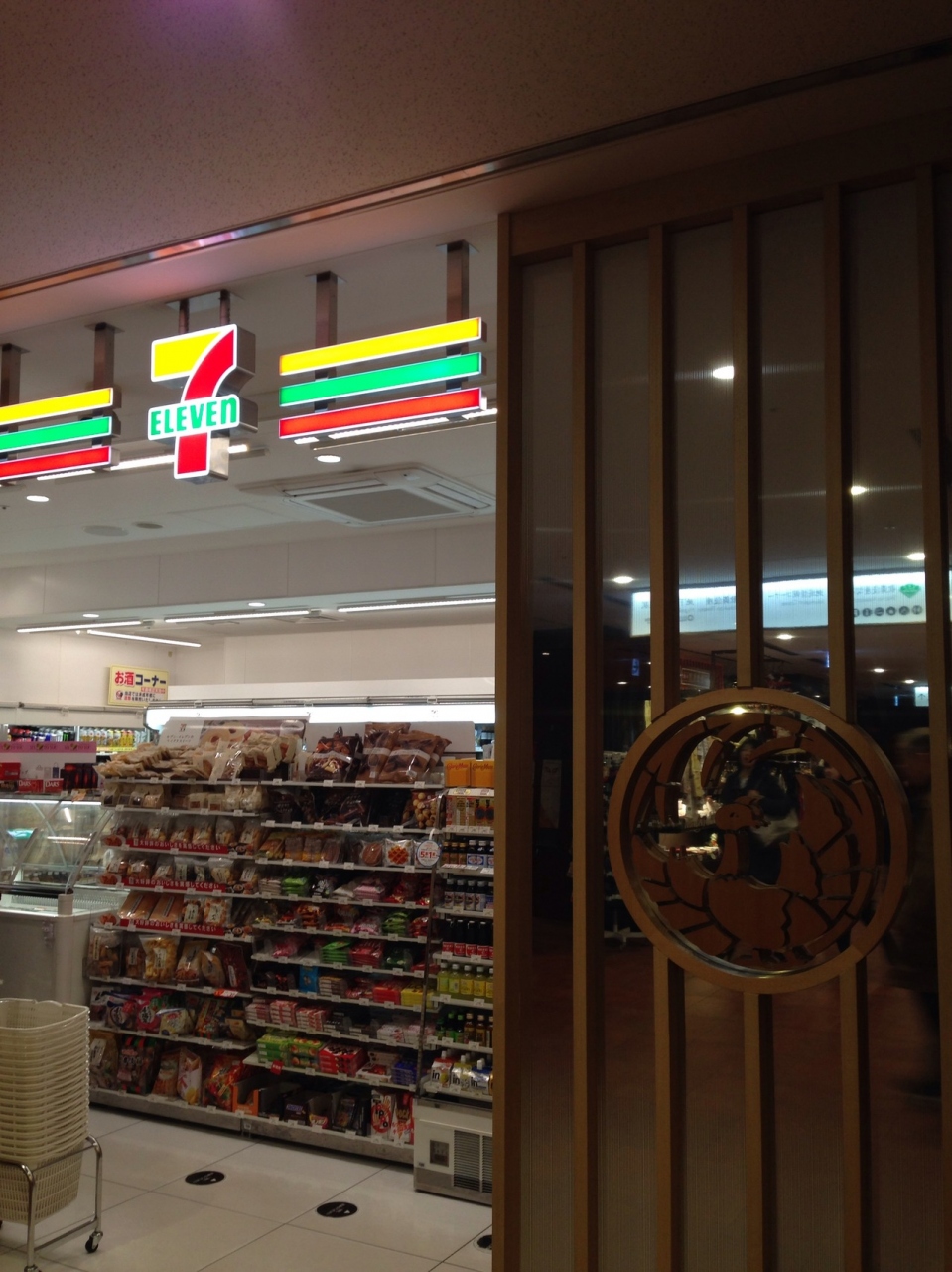 カフェや休憩用の椅子も畳敷き おおきな提灯 こだわりを感じる。この空間にセブンイレブンが突然あって ちょっと違和感ありました。