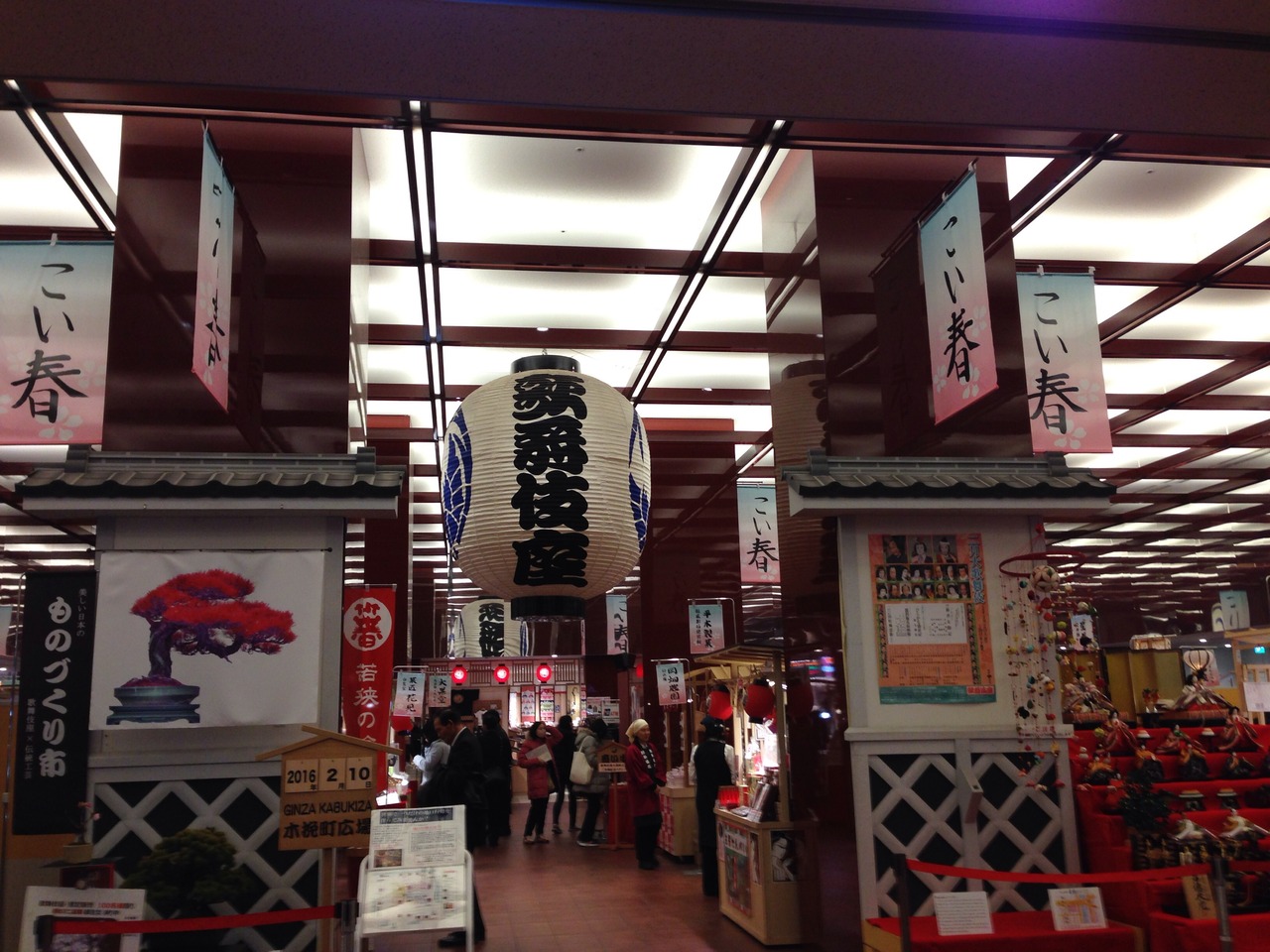 歌舞伎座の地下 メトロ直結 歌舞伎座土産が並びます。お菓子や雑貨…和のテイストのものや、実演なんかもやっていて歌舞伎を見なくとも 雰囲気を味わえます。