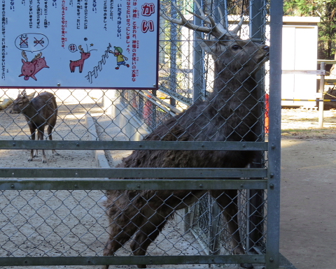 鹿島神宮の鹿も、奈良の鹿のように檻の中ではなく自由に外を歩き回れたらよいのでしょうが、神宮境内の貴重な植物が食べられる恐れもあるから、檻の中に入れられているのかな?