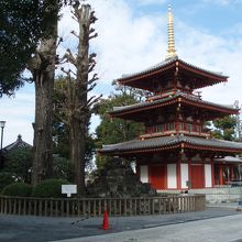 広い境内には純木造建築の三重塔や珍しい石臼供養塚あります~
