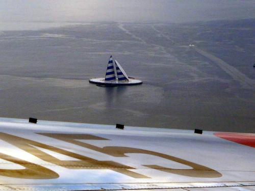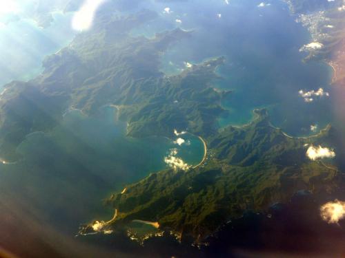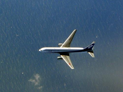 同時間帯の飛行も多く、全く同じ場所を高度を変えて飛ぶことがあるようで、JAL機の窓から、真下を飛行するANA機の姿を真上から眺める機会がありました。