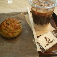 大阪梅田ヨドバシカメラの1F外側にあるカフェです。パンの販売コーナーとイートインスペースが店内と店外にあります。ここはヨドバシカメラのフリーWi-Fiが入ります。パンは結構オーソドックスな形です。結構混んでいますね。