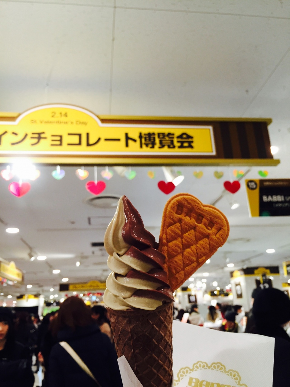 バレンタイン時期に9階の催場と祝祭広場で開催されているチョコレート博覧会。