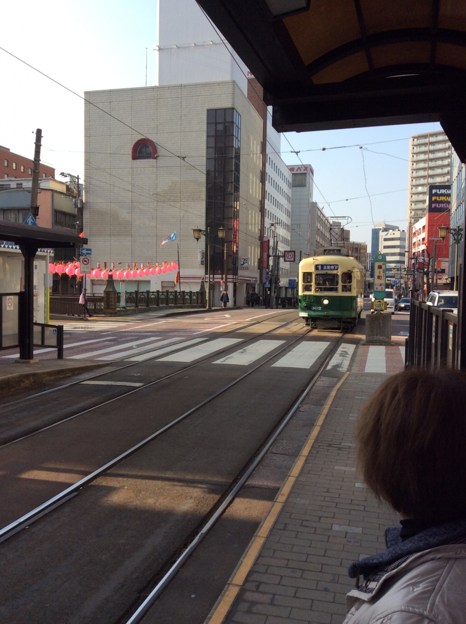 築町電停が各路線の乗り替え電停なので、乗り替えするときは「乗り継ぎ券下さい」と言ってお金を払って降りて下さい。継ぎに乗った電車を降りる時は乗り継ぎ券を運賃箱に入れる仕組みです。とても良いシステムだと思います。