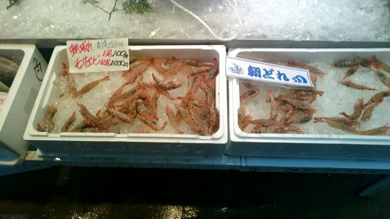 紅ズワイは1杯¥500と¥700とありましたが、¥700のを¥500にしてくれるというので1杯購入。猛者エビも売られていたので購入して帰りました。