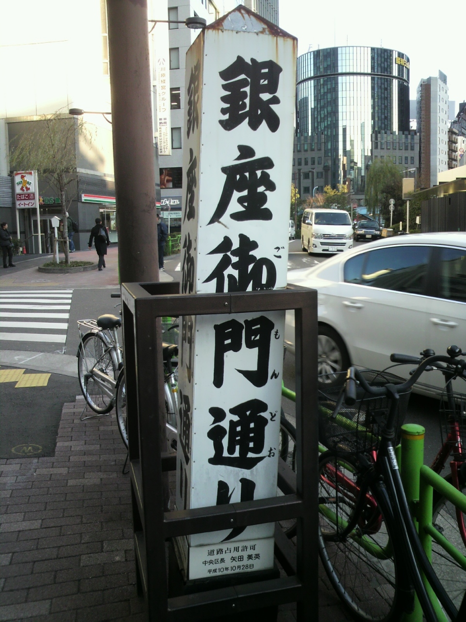 芝口御門跡の碑が、銀座8丁目の御門通りにあります。