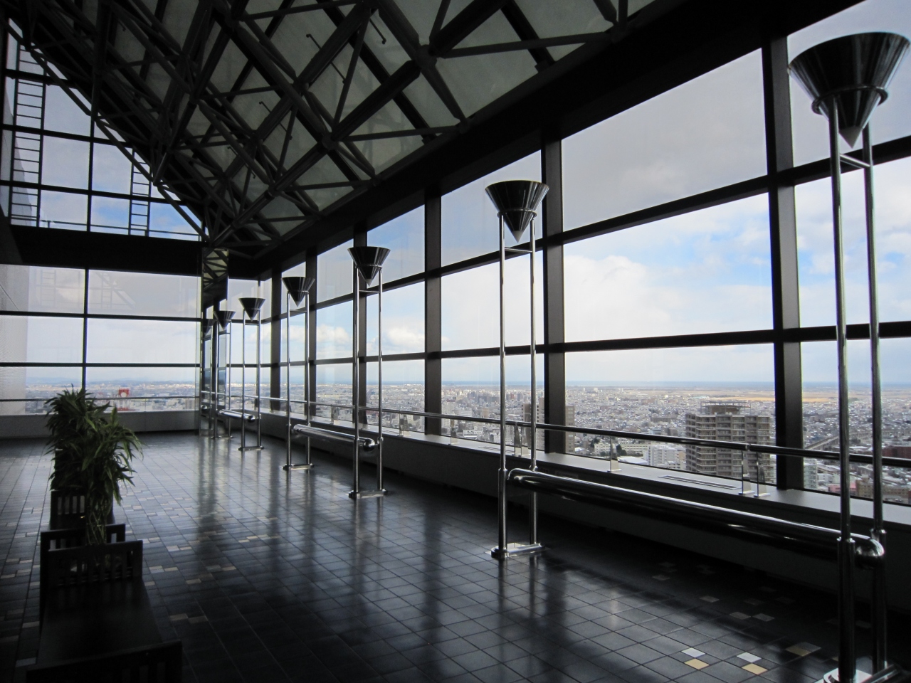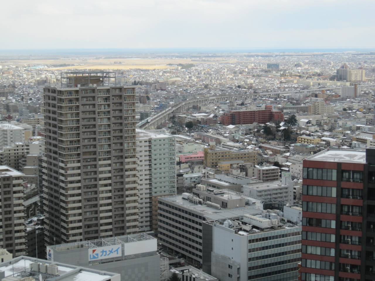 SSとは生命保険会社の頭文字のようです。オフィスビルで30階が展望フロアとなっています。28階から上は専用エレベーターがあり、結婚式場が主で29階の半分がスパゲティ店、30階の半分が展望フロアとなっていました。展望フロア正面からは東京方面から来る新幹線を見る事が出来、左側は仙台駅を出発する新幹線や仙台湾を見ることが出来ました。あまり訪れる人はいないようですが、無料で綺麗な景色を見る事が出来ました。仙台にある展望ビュースポットの一つです。